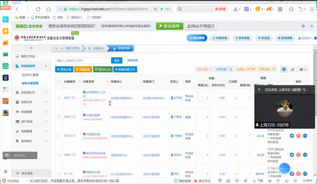 为进一步强化实验室管理工作意识,切实提升实验室安全信息化管理水平。4月27日,万象城官网邀请上海万欣计算机信息科技有限公司工程师刘好奇对实验室安全管理平台的使用开展培训,教务处相关负责人、各二级学院实验室安全负责人、实训室管理员参加了培训学习。