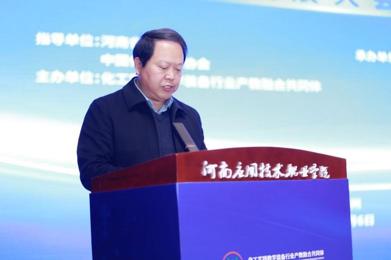 中国化工教育协会职教发展部李建伟主任致辞,他对共同体建设方向和任务进行了准确的评价,代表中国化工教育协会对共同体在过去的工作做出了肯定,也为共同体发展给与期望,希望共同体成员单位以及全体同仁能够继续在化工领域深耕细作,不断开拓创新,为化工行业发展贡献力量。