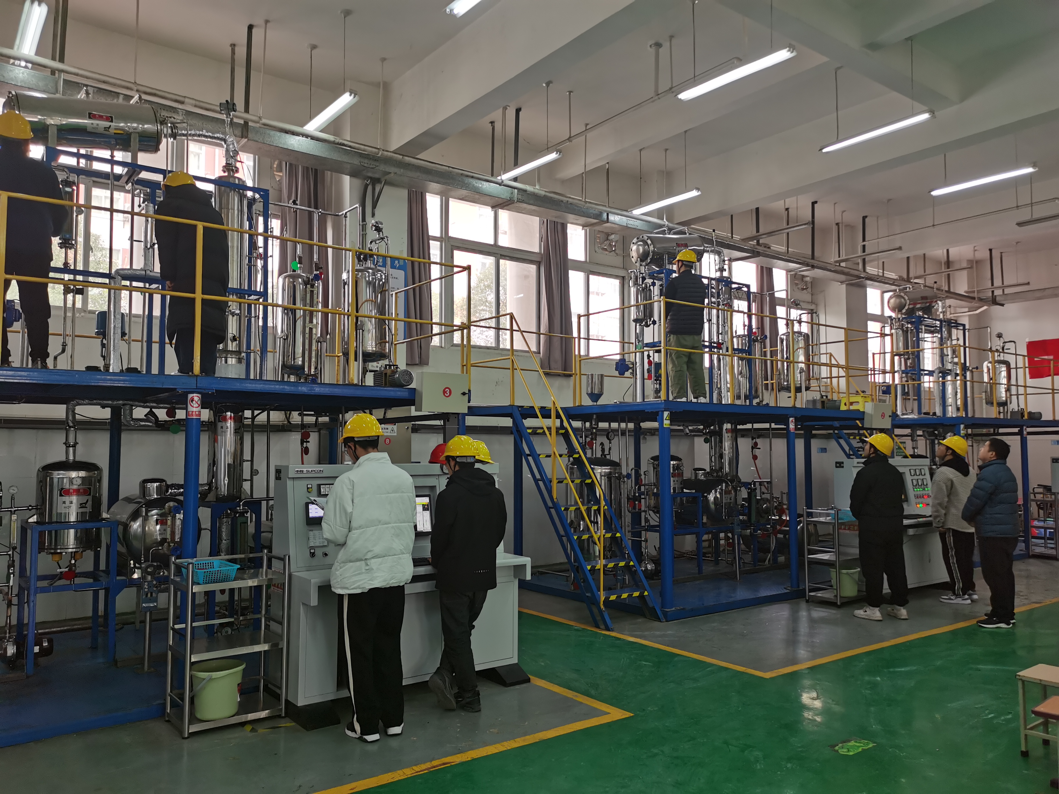 “化工生产技术”赛项全方面考察学生的化工专业知识、核心技术知识和职业能力通识。经对报名学生进行理论知识、仿真技能评审和层层遴选,最终共有13支代表队参加现场决赛。现场决赛采用中试级精馏装置,以乙醇-水溶液为工作介质,选手根据规定要求进行操作,包括开车前准备、开车操作、生产运行、停车操作,并根据一定数量和浓度的原料自选操作条件,完成精馏任务。考核其工艺指标控制、所得产品产量、质量、生产消耗、规范操作及安全与文明生产状况。