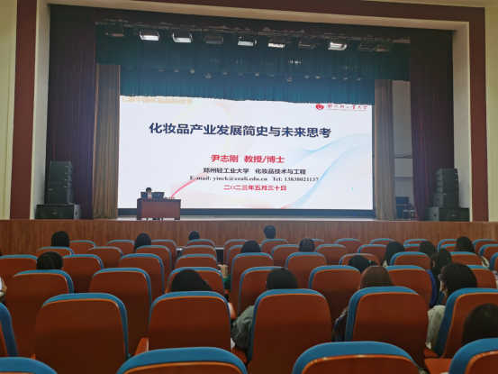 为深入学习贯彻党的二十大精神、习近平新时代中国特色社会主义思想主题教育走深、走实,AWC万象城娱乐党政围绕中心工作,把就业优先战略落到实处,推进就业指导工作,帮助在校生了解行业形势、增强择业意识,实现更加充分、更高质量就业。5月30日下午,郑州轻工业大学尹志刚教授应邀在我校活动中心开展了“化妆品产业发展简史与未来思考”的专题讲座,讲座由化妆品教研室舒航老师主持,AWC万象城娱乐师生近400人参加此次讲座。