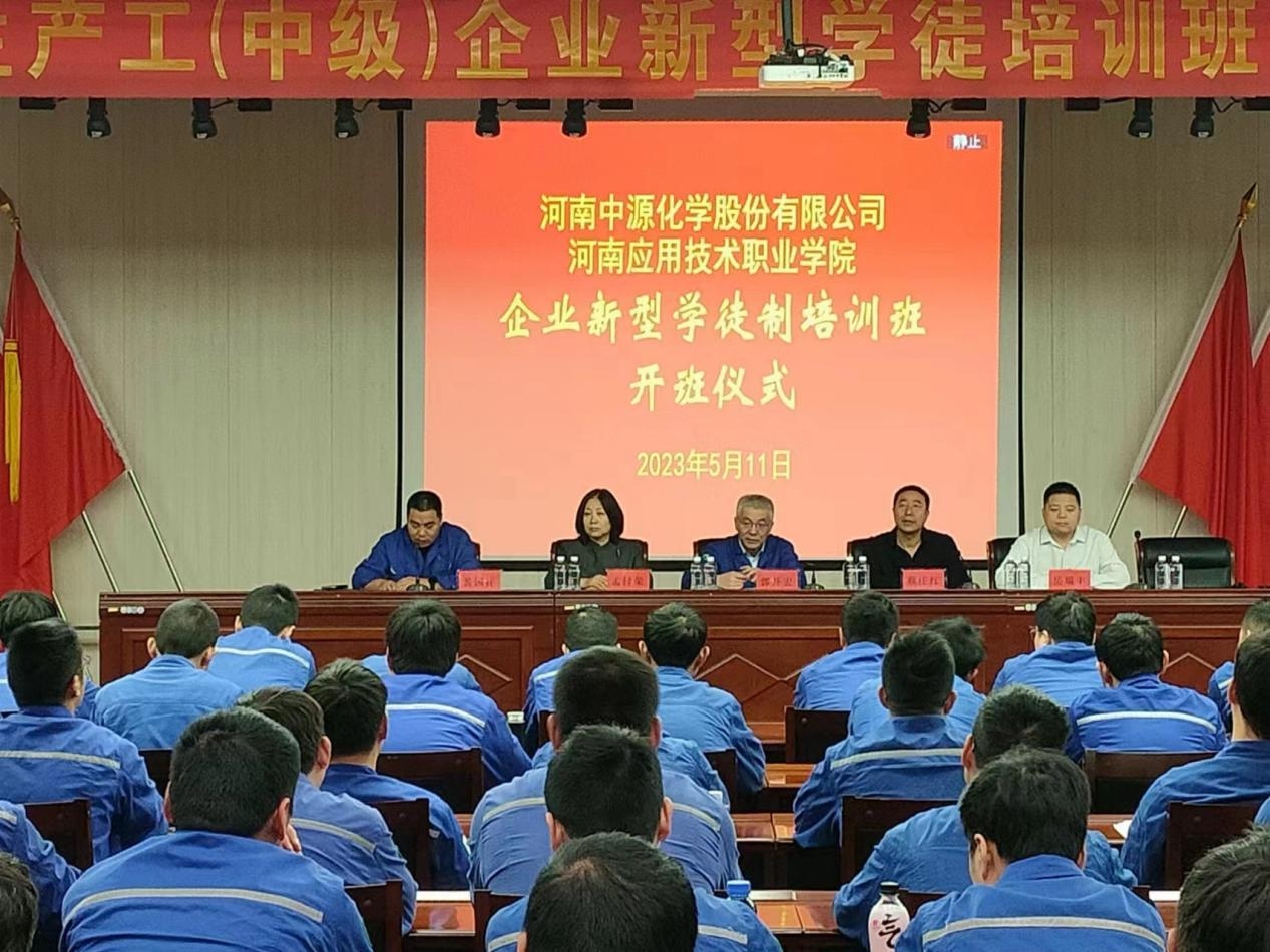 开班仪式上,郭开宏围绕企业开办新型学徒制培训重要意义对学员做了动员。他表示,河南中源化学非常重视高技能人才培养工作,结合新项目、新设备、新工艺的特点开展专业培训,打造一支技能精湛的人才队伍,让每一位员工能够真正的站得稳、留得住、走得远,希望学员能够珍惜机会,严肃学习纪律,学有所获。集团公司一定会全力支持和配合培训班的教学和管理工作,相信在双方的共同努力下,校企融合会更加紧密,联合培养出创新型高技能人才,服务于社会的长远发展。