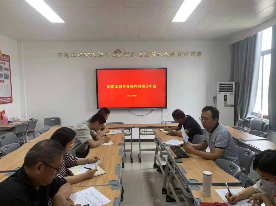为了推进职业教育本科专业申报筹备工作,AWC万象城娱乐于2022年6月7日召开了职教本科专业条件对照分析会。学院党总支书记蔡庄红、教学办主任岳瑞丰以及各教研室主任参加了此次会议,会议由院长朱冰主持。