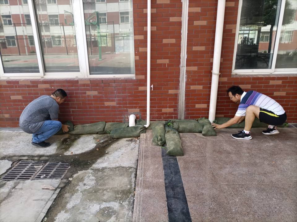 此次汛期隐患排查由朱冰院长带队,他查看了E楼负一层实训中心雨季防护工作,并积极组织人力,调拨防汛物资,对排水口作清淤工作、加固沙袋等。他要求,院部值班人员要密切关注天气变化,加强汛情巡查,出现问题及时上报,进一步消除防洪隐患,全力防范暴雨天气带来的危害,将防汛备汛和疫情防控两手抓,落实平安开学条件,全力护航校园安全。