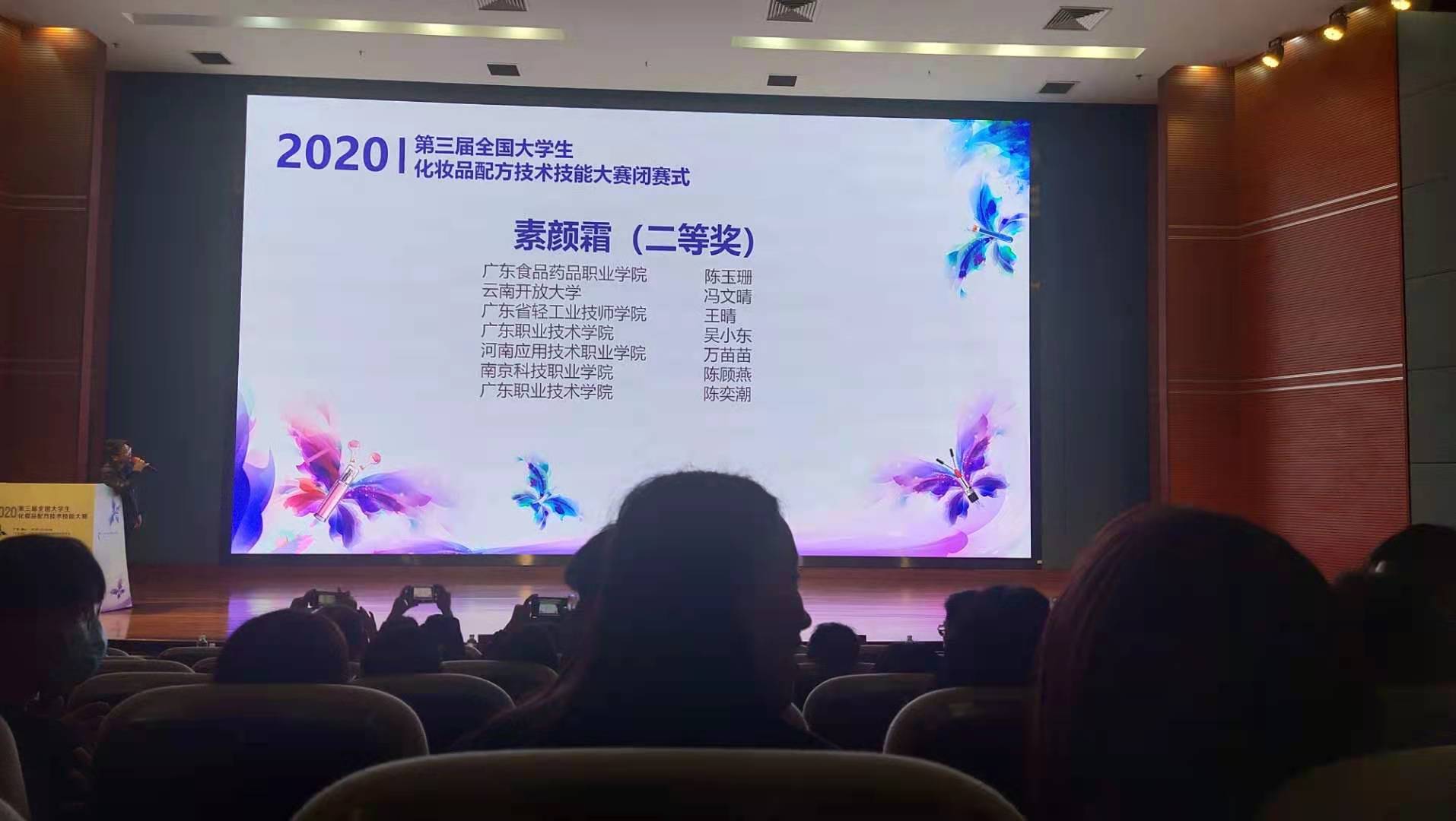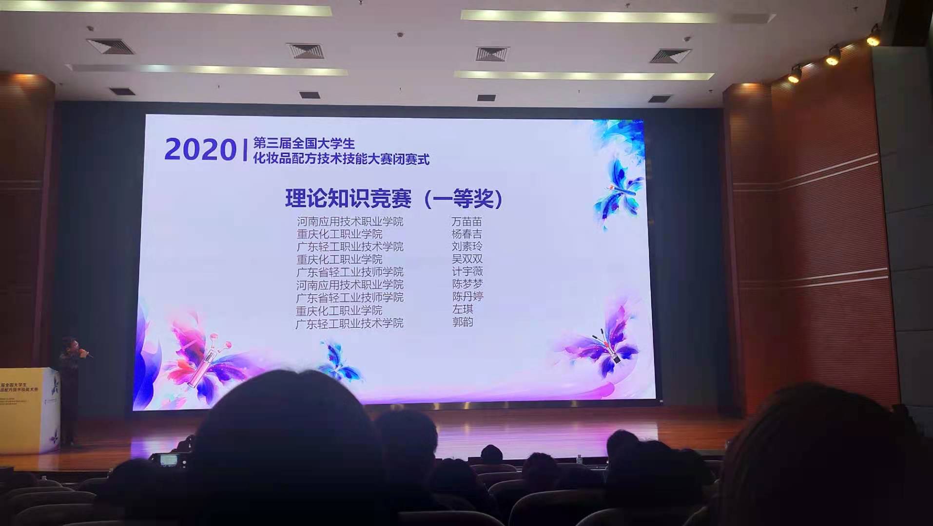 热烈祝贺我校AWC万象城娱乐19级化妆品经营与管理专业万苗苗、陈梦梦两位同学在2020年第三届全国大学生化妆品配方技术技能大赛中分别荣获个人理论知识竞赛一等奖,素颜霜实操项目个人二等奖,团体三等奖的好成绩!