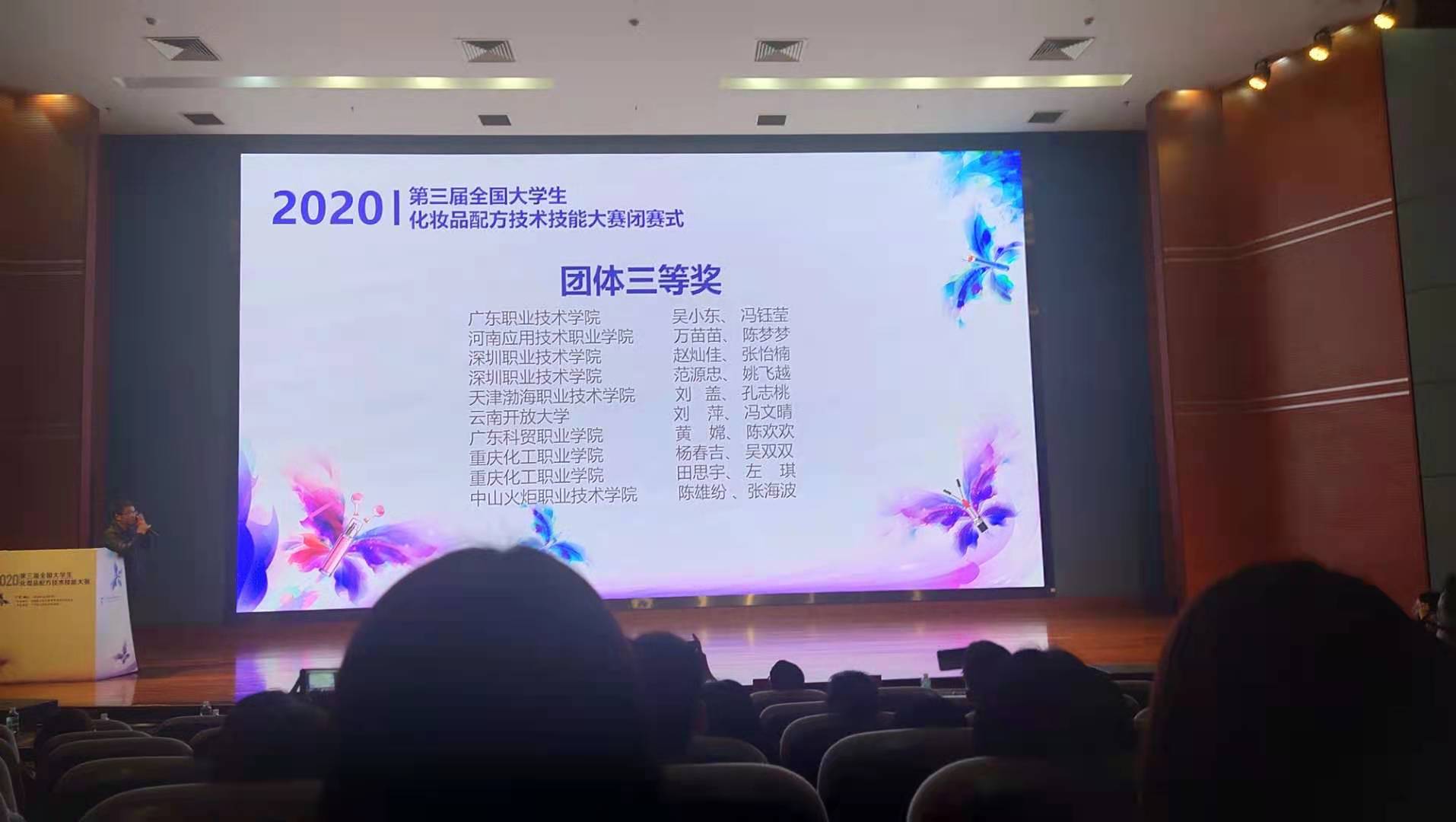 全国大学生化妆品配方技术技能大赛是全国轻工职业教育教学指导委员会组织,联合相关部门、行业组织、地方院校共同举办的一项全国高职院校化妆品配方技术技能竞赛活动。本次大赛于2020年12月04日至12月06日在广东轻工职业技术学院举行,共有来自全国各地的19所高职院校、32支代表队伍、64名选手、64名指导教师以及30名来自各职业院校和知名企业的专家作为裁判共同参与。