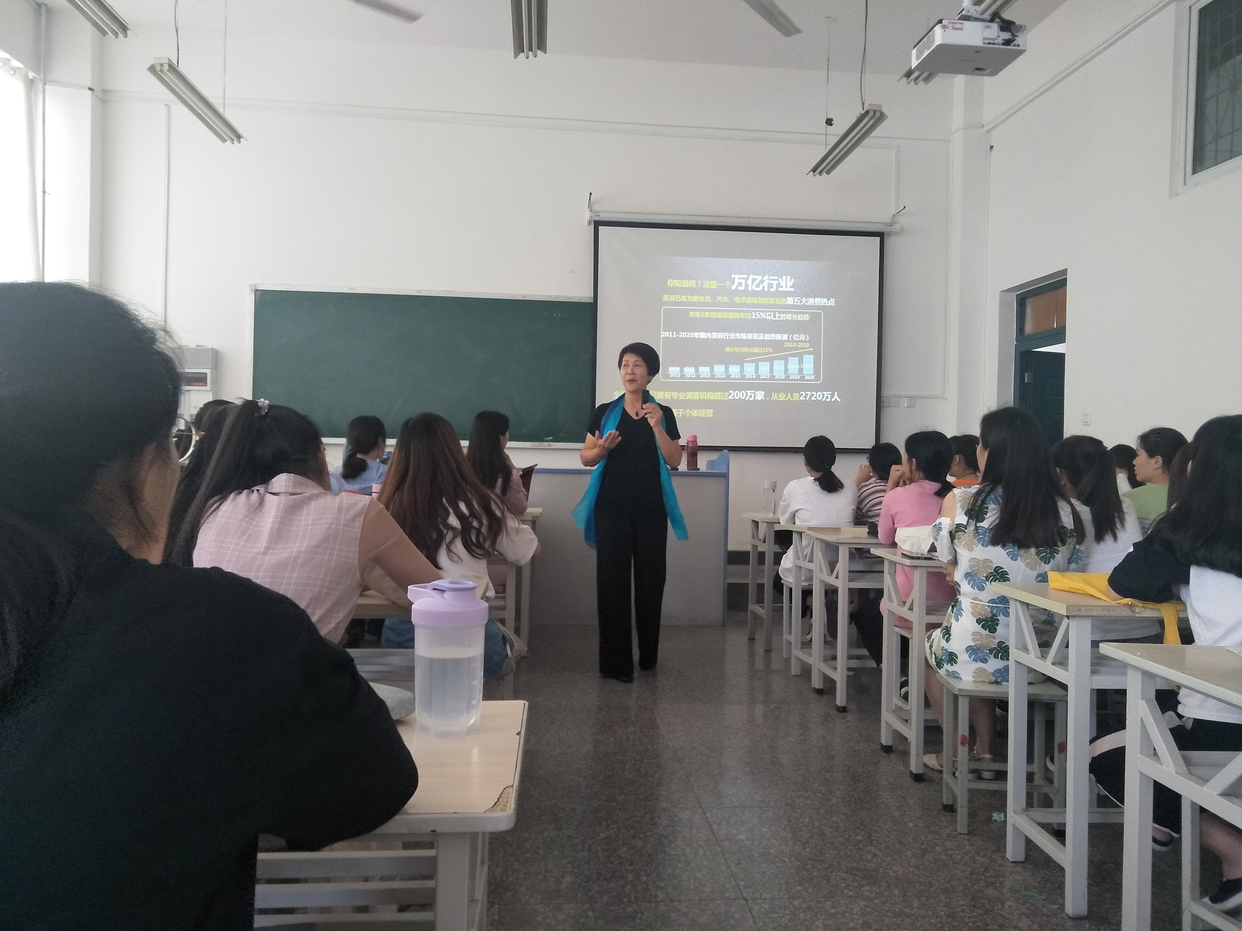 会上,傅润红女士首先对美容行业的前景进行了介绍,认为本行业已经成为了继住房、汽车、电子通信和旅游后的第五大消费热点,并预测未来5年将连续保持年均15%以上的增长趋势,具有良好的工作和创业前景。傅女士以伊丽汇为案例,介绍了美妆行业现行的企业环境、企业文化、薪酬水平,从中分析了在本行业创业需要的准备条件和基本模式。
