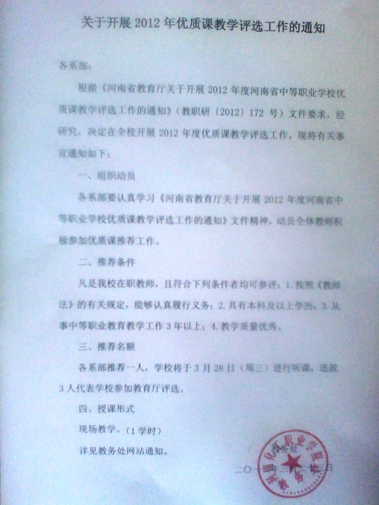 接教务处通知,万象城官网将举行优质课评选活动,具体事项见附件。请有意参加的老师提前做好准备,并在下周一之前告知教学秘书。