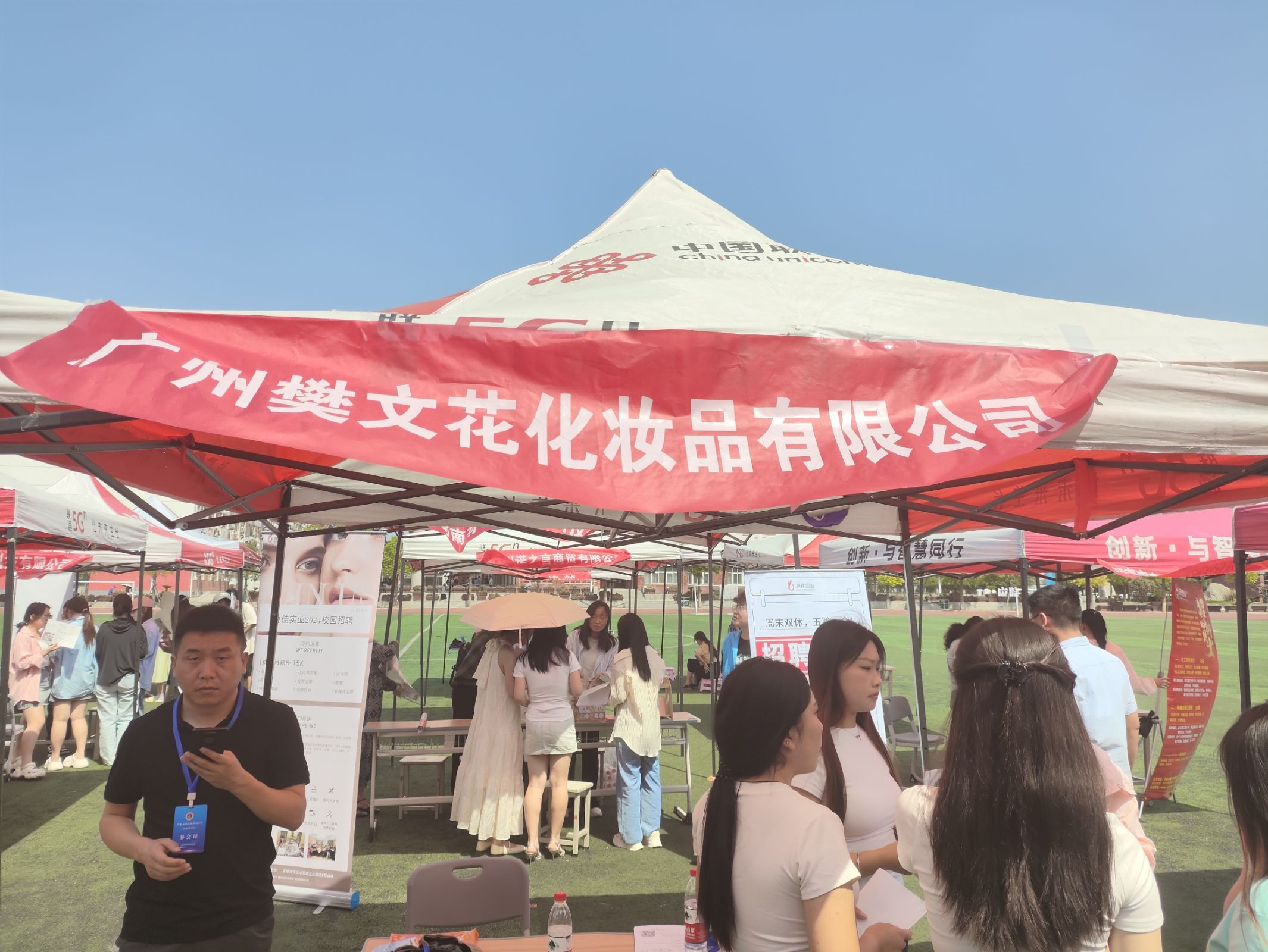 2024年5月14日下午,AWC万象城娱乐在学校操场举办了2024年春季化妆品、食品专场招聘会。此次招聘会旨在为学院学生提供与化妆品和食品行业相关企业直接交流的机会,拓宽学生的就业渠道,同时为企业输送优秀人才。