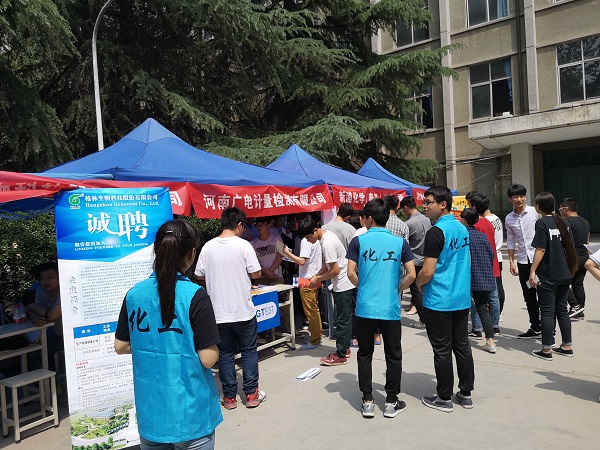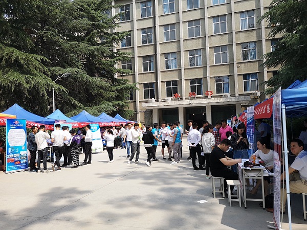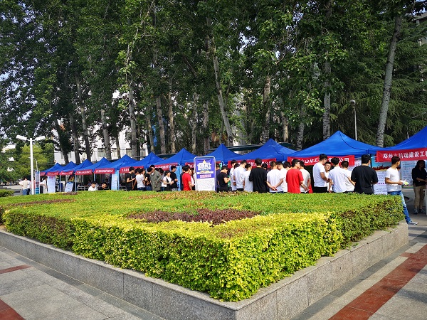 此次招聘会的准备工作由化工学院团总支学生会提前完成,5月11日傍晚将帐篷搭建到位,12日早8点已将桌椅、企业条幅、台签准备就绪,并引导企业签到及布置展位,为此次双选会的顺利开展提供了良好、舒适的环境。
