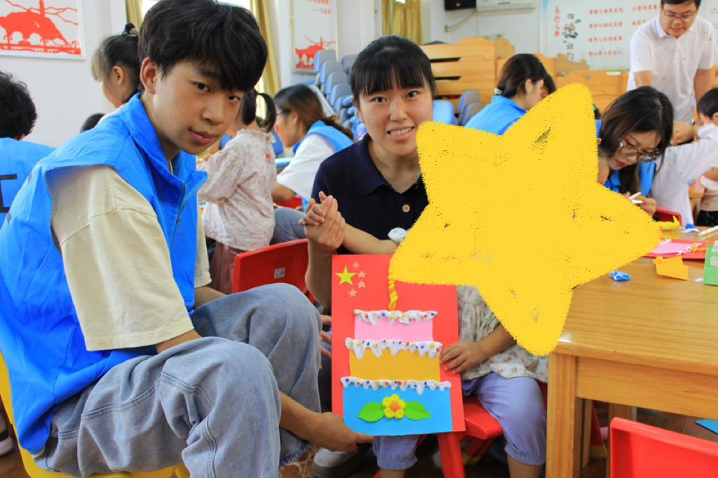 接着进入手工环节,志愿者们通过前期精心准备的彩纸和黏土,带领小朋友们制作生日蛋糕来祝福祖国母亲生日快乐。制作过程中,志愿者们耐心地引导,小朋友们热情高涨,充分发挥自己的想象力和动手能力,用小手将彩纸和黏土变成一个个充满创意的生日蛋糕作品,这些蛋糕色彩斑斓、造型独特,每一个都饱含着对祖国母亲的深深祝福,现场沉浸在一片欢乐且充满爱国情怀的氛围之中。