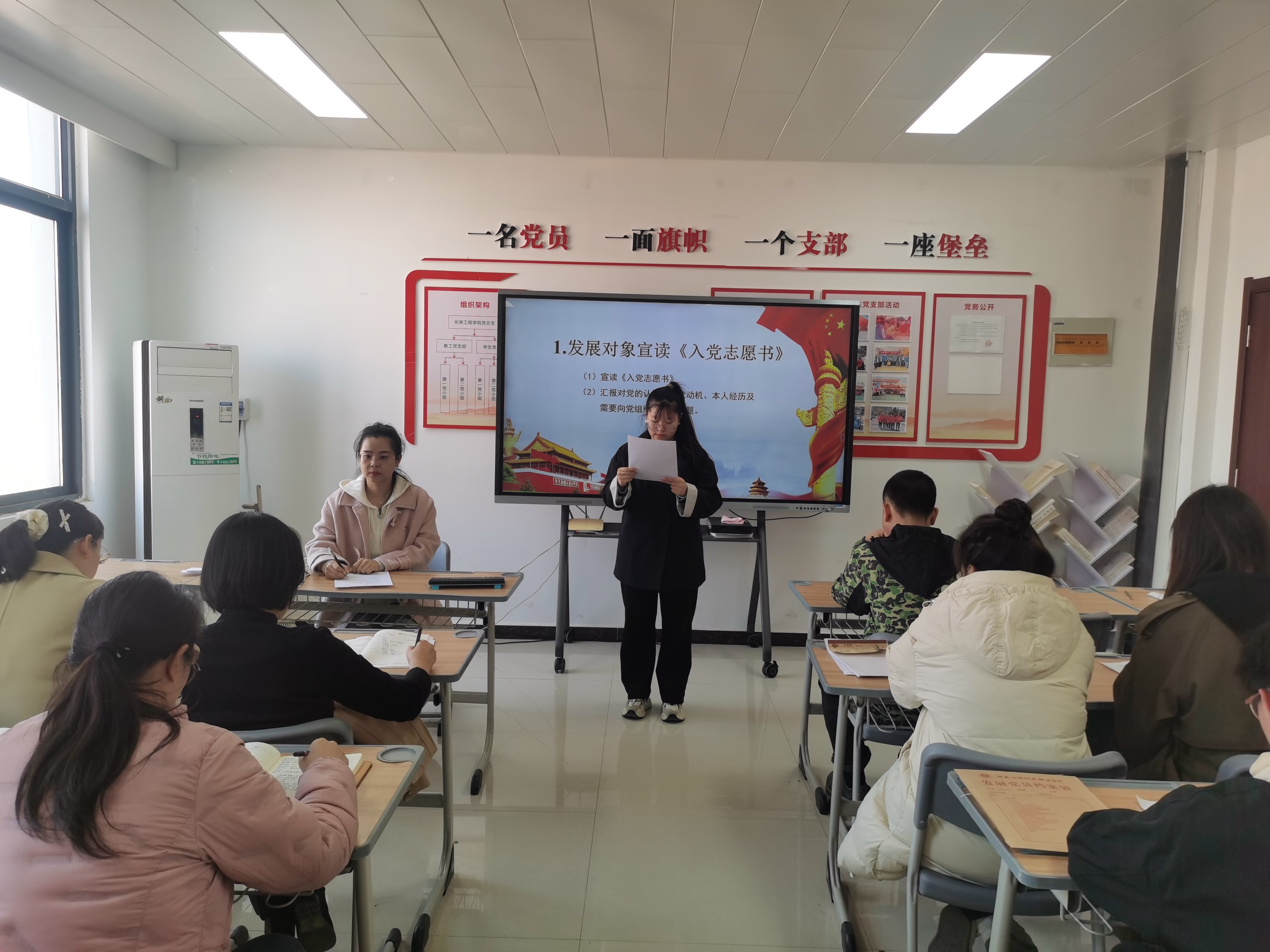 张黎君老师代表支委会向大会报告了15名发展对象的审查情况和支委会意见,并对是否符合党员条件发表意见并组织进行充分讨论,经支部大会正式党员无记名投票表决,同意接收胡正阳等15名同志为中共预备党员。