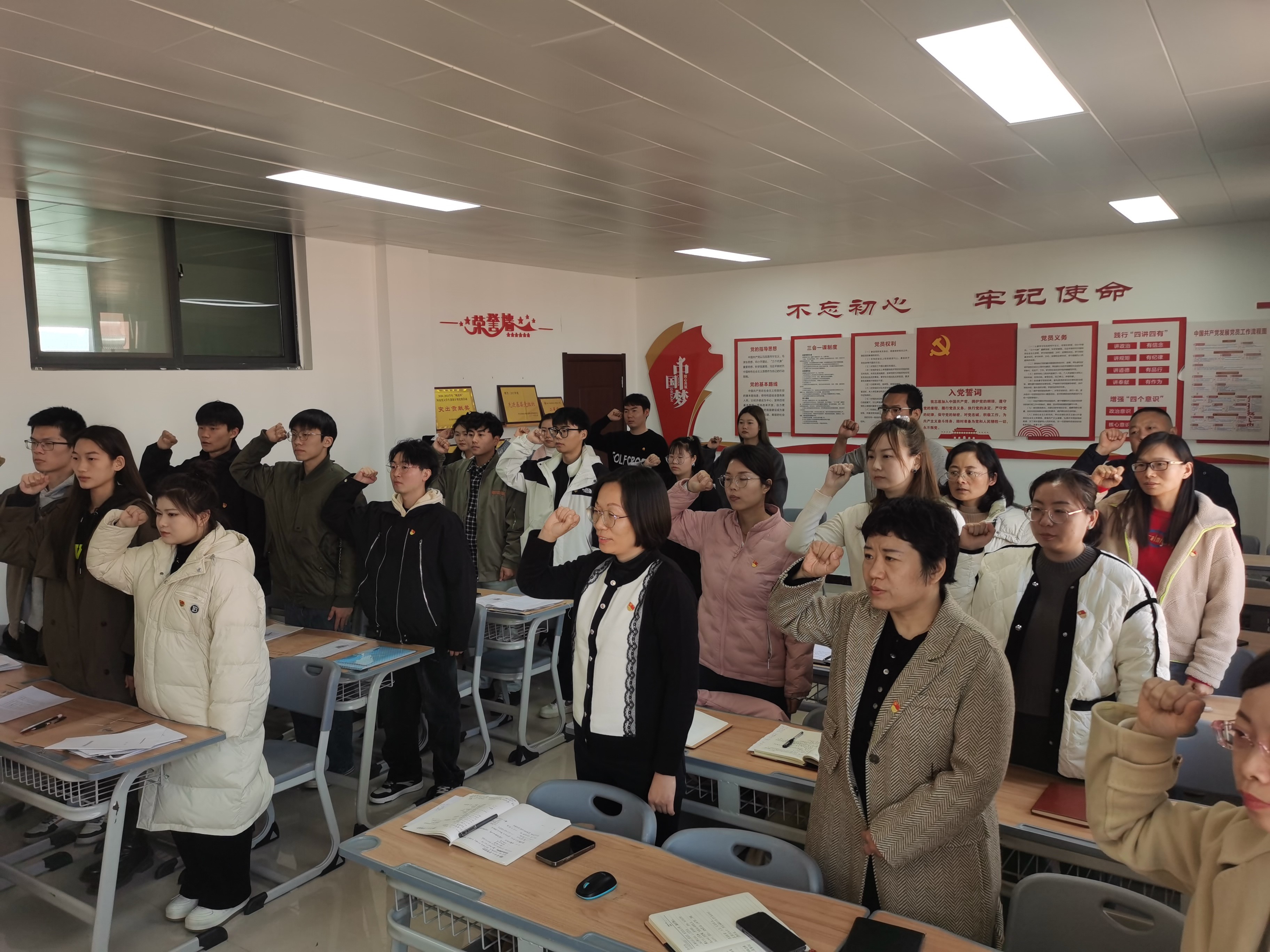 全体党员高举右拳庄重宣誓,铿锵有力的誓言让每一名同志铭记于心,时刻牢记自己的党员身份,做一名无愧于党和人民的共产党员,并由入党介绍人为各位佩戴党员徽章。