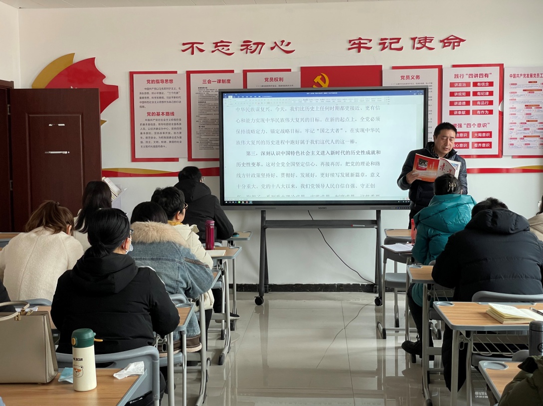 首先,蔡庄红书记领学了习近平总书记在党的十九届六中全会第二次全体会议上的重要讲话《以史为鉴、开创未来,埋头苦干、勇毅前行》。讲话指出,要坚定历史自信,自觉坚守理想信念;要坚持党的政治建设,始终保持党的团结统一;要坚定担当责任,不断增强进行伟大斗争的意志和本领;要坚持自我革命,确保党不变质、不变色、不变味。以伟大自我革命引领伟大社会革命,以伟大社会革命促进伟大自我革命,确保党在新时代坚持和发展中国特色社会主义的历史进程中始终成为坚强领导核心。