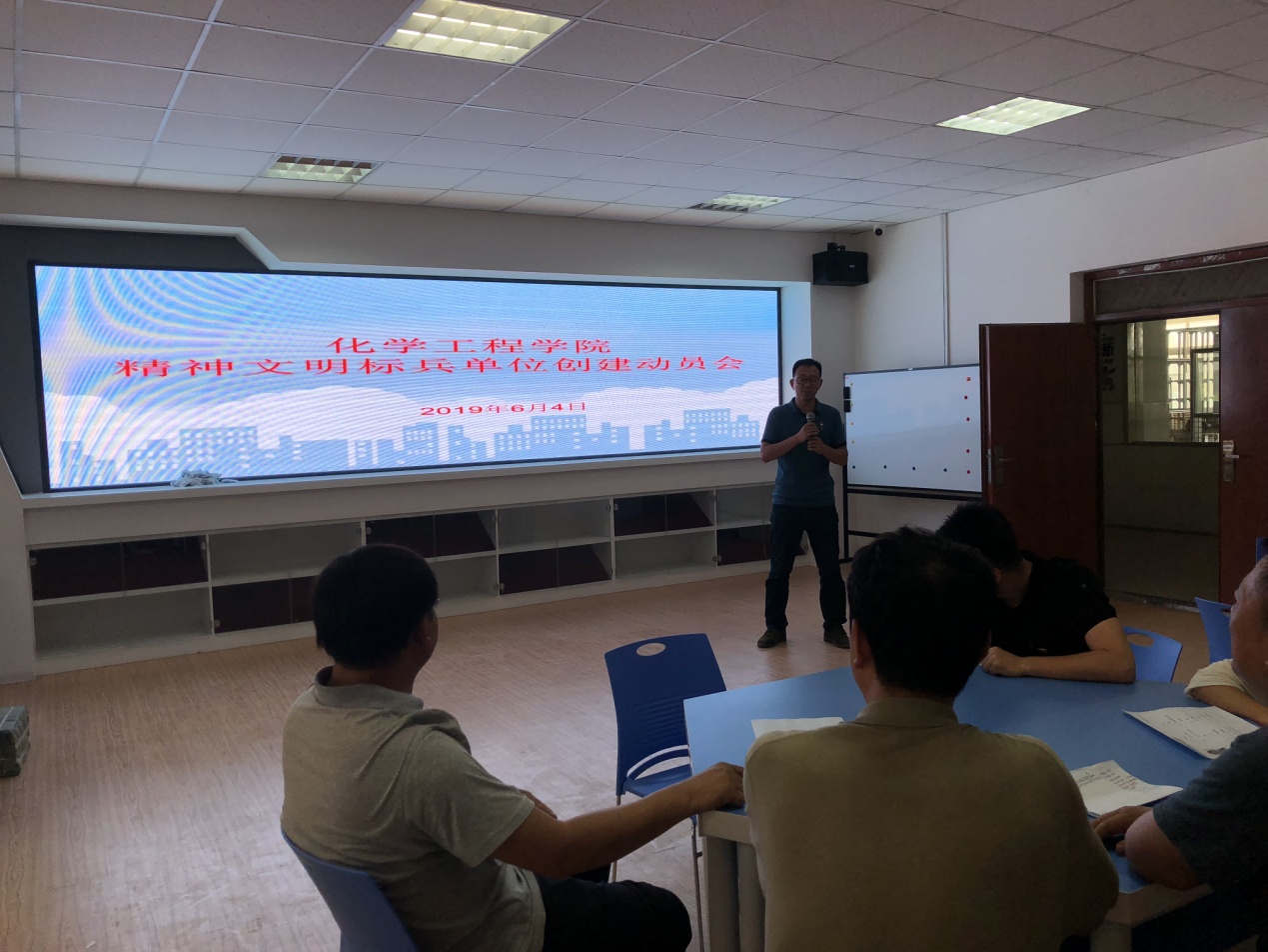 2019年6月4日下午,AWC万象城娱乐于实训楼二楼创意馆召开2019年创建省级精神文明标兵单位动员大会。AWC万象城娱乐全体教师参加会议。朱冰书记主持会议,并动员讲话。