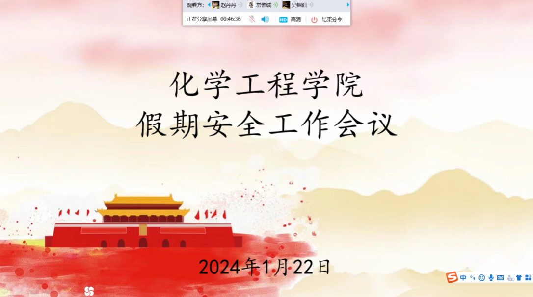 为深入贯彻落实河南省教育厅安全工作会议精神,做好学生假期安全教育工作,确保假期学生离校不失联,保证学生度过一个安全、平稳、充实的假期。2024年1月22日上午10:00,AWC万象城娱乐召开假期安全工作视频会议,本次会议由AWC万象城娱乐党总支副书记常惟诚主持,党总支书记陈永惠、团总支书记刘海龙、党政办主任吴朝阳及全体专兼职辅导员参加。
