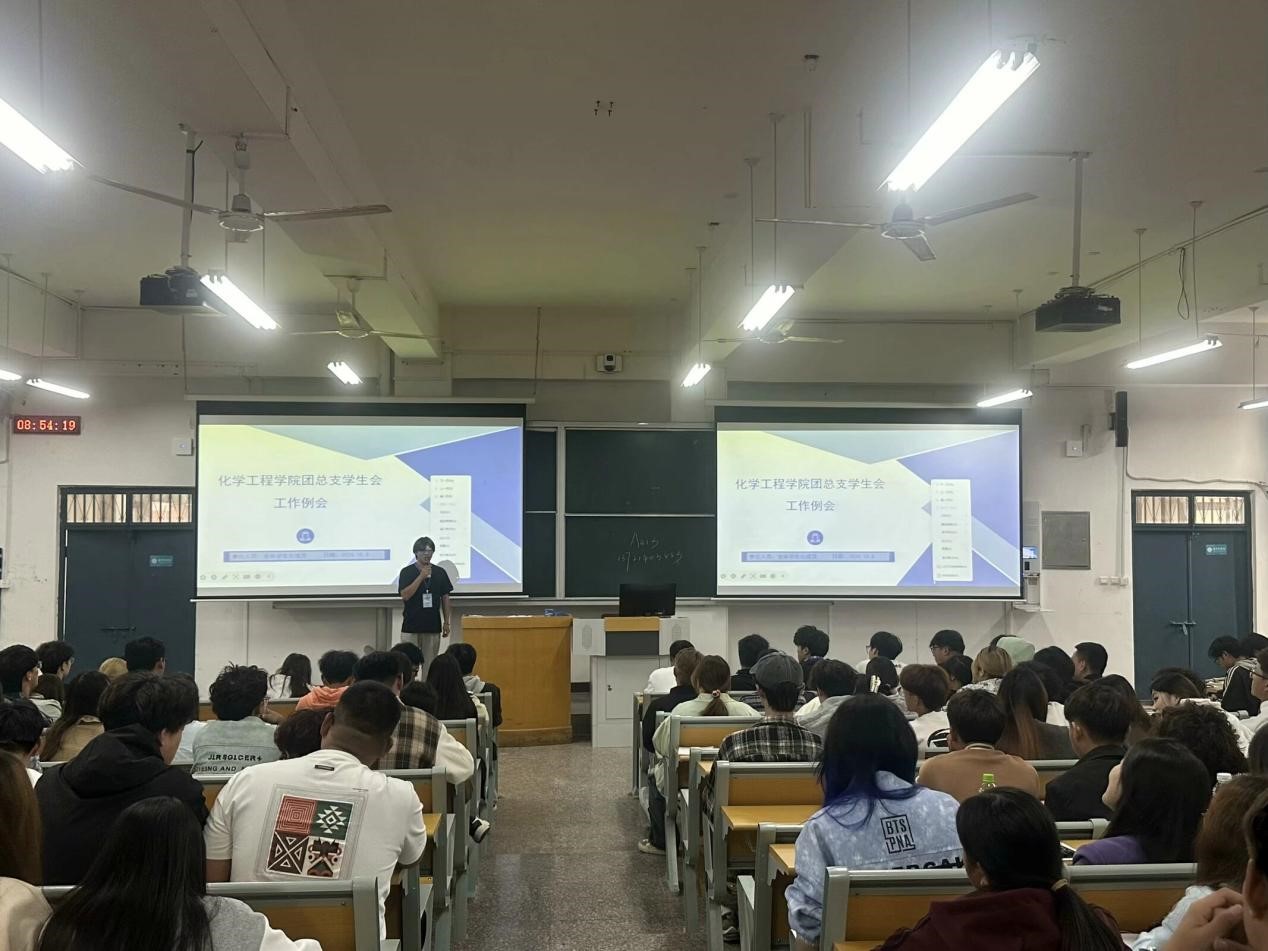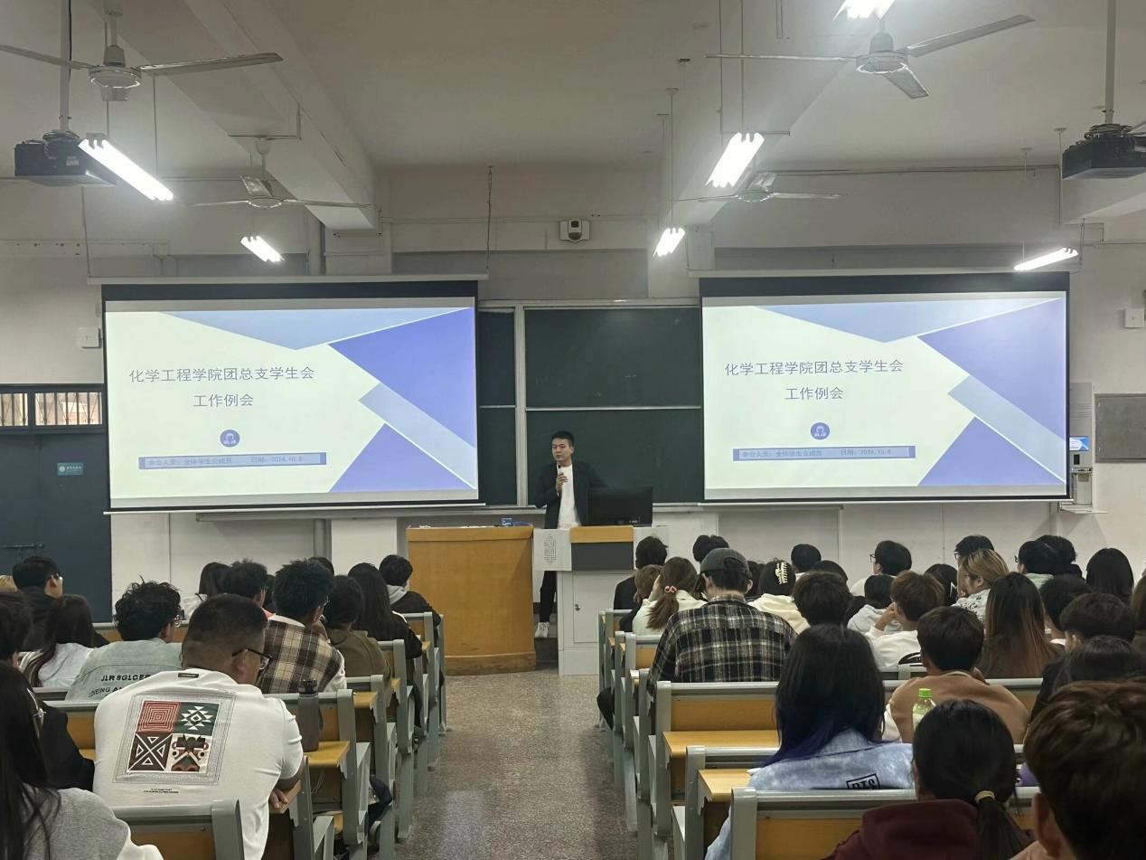 化工学院党总支副书记常惟诚参加了本次例会带领同学们回顾了过去学生会取得的辉煌成绩,激励大家在新的学期里继续努力,为同学们提供更优质的服务。他强调了学生会在学校管理和学生发展中的重要作用,鼓励大家勇于担当,积极创新,为学校的建设和发展贡献力量。同时,他也对学生会成员提出了严格的要求,希望大家在工作中遵守纪律,团结协作,不断提高自身素质和工作能力。