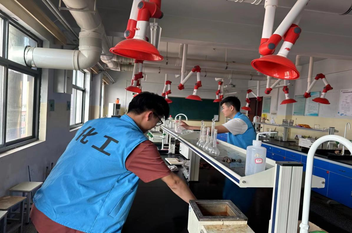 5月7日,学院组织第二课堂成员对E楼实训室、D楼实验室开展卫生大扫除。活动开始,负责人讲解了生产线、管拆室、纯水间、化学分析实验室……分别如何打扫。活动中,同学们手拿扫把、抹布、垃圾铲等工具,分工合作,密切配合。以全覆盖、无死角为原则进行清扫和整理,经过大家的努力,实训室环境焕然一新。